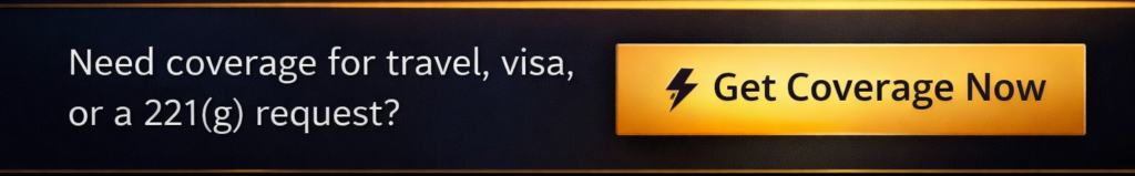 From routine travel protection to urgent embassy requirements like a 221(g) request, having the right coverage can mean the difference between moving forward… or being delayed indefinitely.